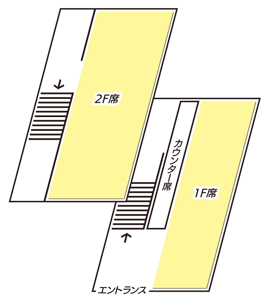 気軽なバルスタイル1Fとゆっくり落ち着いた2Fを用途によって使い分けてください。